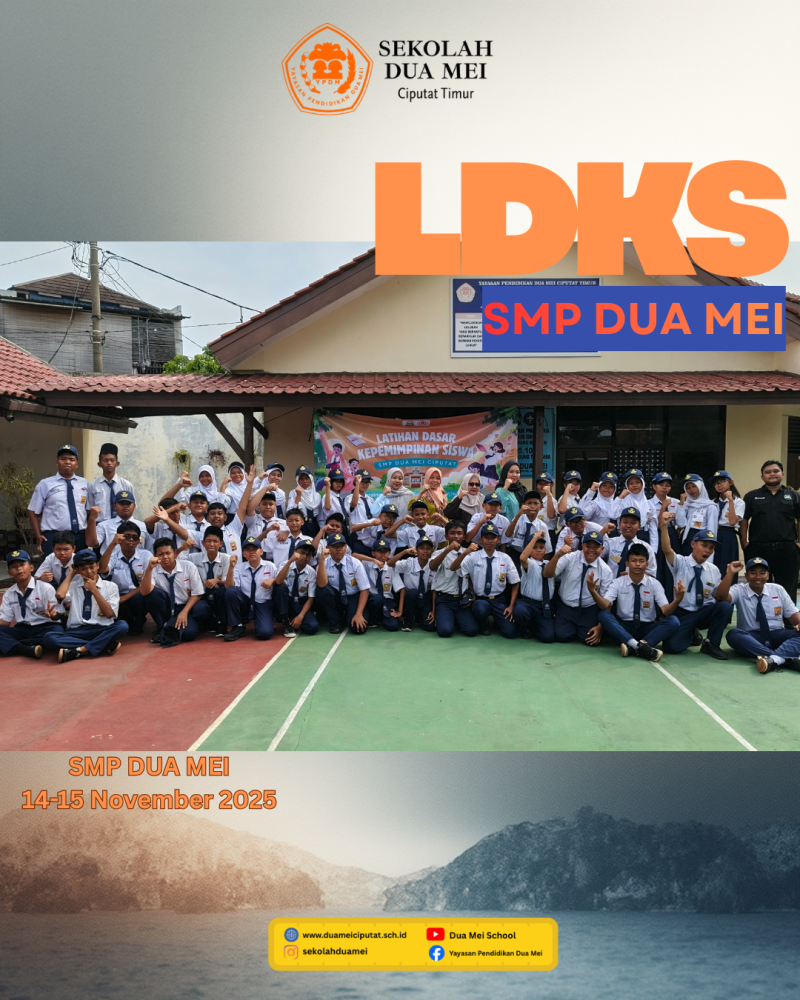 Latihan Dasar Kepemimpinan Siswa (LDKS) SMP Dua Mei dilaksanakan pada tanggal 14-15 November 2025 di lingkungan Sekolah Dua Mei. Kegiatan Latihan Dasar Kepemimpinan ini bertujuan untuk melatih dan mengembangkan jiwa kepemimpinan, karakter, dan keterampilan manajerial siswa. Selain itu dilaksanakan serah terima jabatan pengurus OSIS periode 2024/2025 kepada pengurus OSIS periode 2025/2026. Dua Mei..! Jaya..! Jaya..! Jayaa..! #sekolahduamei #smkduamei #tangsel #tangerangselatan